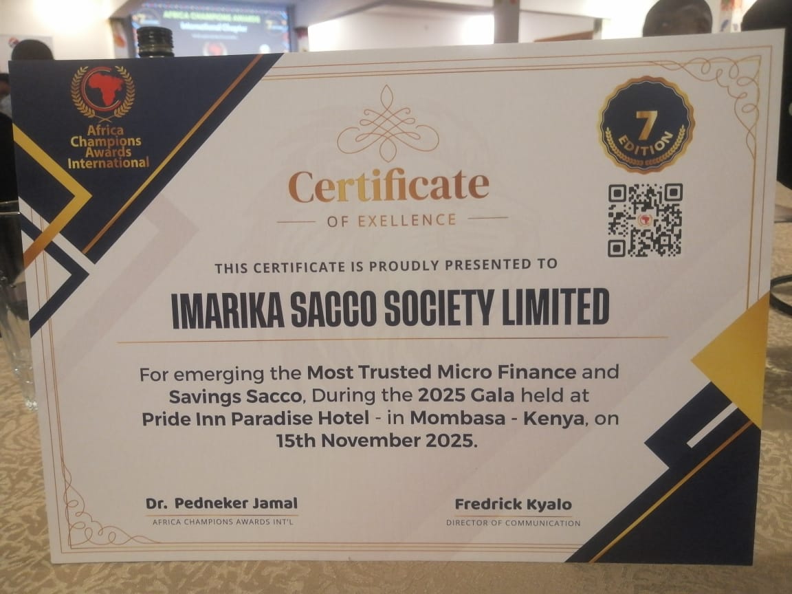 For Imarika SACCO, the award is more than just a trophy—it is a powerful endorsement of the trust its members have placed in the institution for decades. In a statement following the announcement, the SACCO’s leadership expressed gratitude to members for their confidence and loyalty, saying the recognition will inspire even greater dedication to excellence. “Your trust is our greatest motivation,” the statement read, reaffirming the institution’s pledge to continue delivering secure, transparent and innovative financial services.