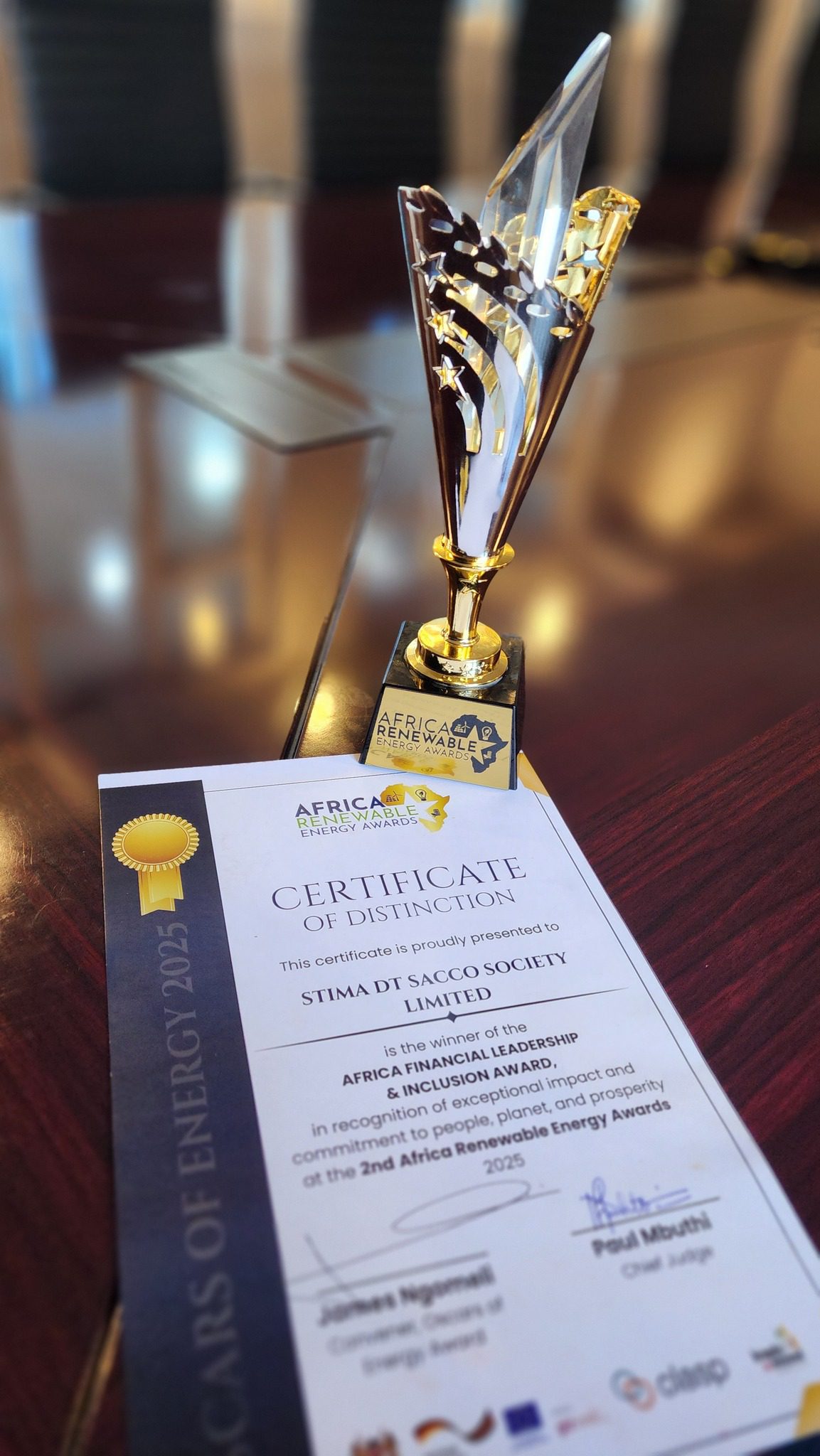 Stima Sacco has received continental recognition for its role in advancing sustainable finance, after being named the winner of the Financial Leadership and Inclusion Award at the Africa Renewable Energy Awards.